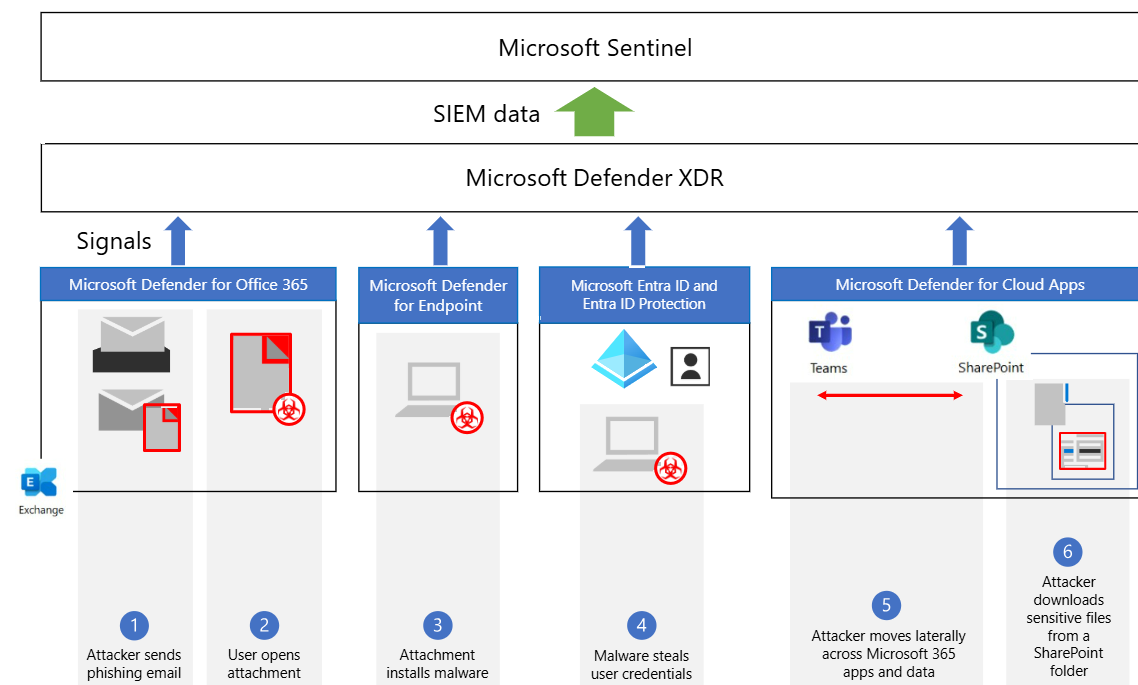 - Global Telemetry: Defender XDR streams data to Sentinel for cross-domain correlation.